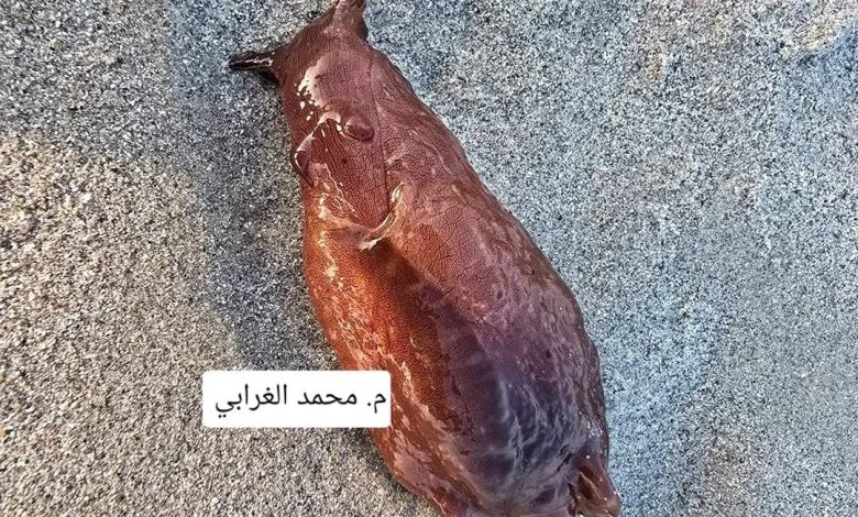 auricularia (Lightfoot, 1786) مساء الأربعاء 11 فبراير 2026 على شاطئ القرين – مدينة قصيعر، مديرية الريدة وقصيعر، ويعرف الاسم الشائع لهذا النوع باسم Wedge Sea Hare أو Ragged Sea Hare، وينتمي إلى رتبة Aplysiida ضمن بطنيات القدم البحرية عديمة الصدفة الخارجية (فصيلة Aplysiidae)،