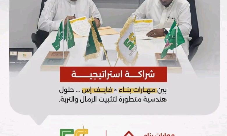 يسرّ مؤسسة مهارات بناء الإعلان عن توقيع شراكة استراتيجية مع شركة 5S (Five S)، المتخصصة في حلول تثبيت الرمال والتربة، في خطوة تعكس التزام الطرفين بتقديم حلول هندسية متقدمة تلبي متطلبات المشاريع الكبرى وفق أعلى المعايير المعتمدة.